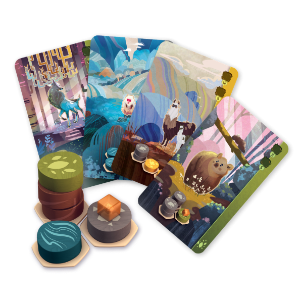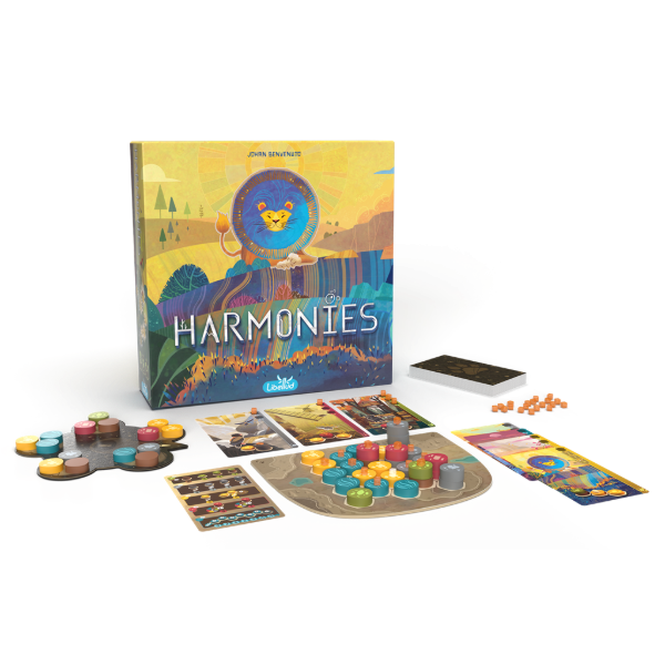 En Harmonies, tenéis que crear vuestros paisajes colocando fichas de colores y así construir hábitats para vuestros animales. Si queréis obtener el mayor número de puntos y ganar la partida, tendréis que incluir los hábitats en vuestros paisajes de manera estratégica y acoger tantos animales como podáis.