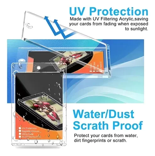Presentá tus cartas más valiosas con la seguridad que merecen. Este protector rígido con cierre magnético está fabricado en acrílico de alta transparencia, diseñado para resaltar cada detalle de tus cartas mientras las mantiene protegidas del polvo, la humedad y los rayones.
